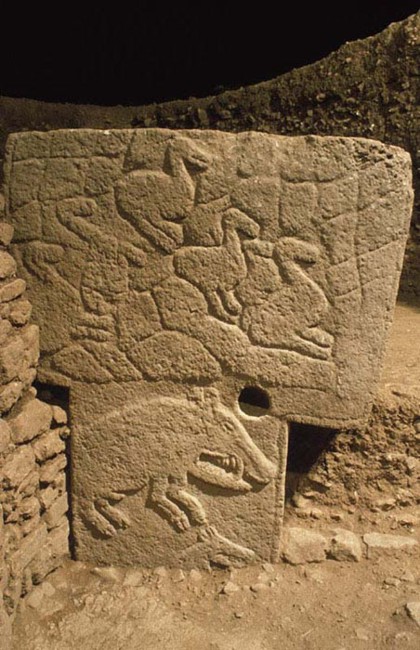 Amazing archaeological discovery! In Turkey, German archeologists found what looks like a "sanctuary", the first sanctuary built by men, thousands years before Stonehenge or Newgrange... It was built 11.500 years ago and it is known by the weird name of Göbekli Tepe (it means "Hill with a potbelly"). It's amazing because it was established by hunter-gatherers, nomadic people, before the advent of sedentarism, long before the first cities.